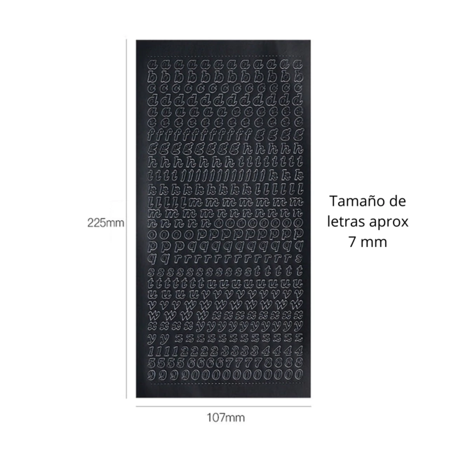 LETRAS MINUSCULAS Y NUMEROS NEGROS MATE AUTOADHESIVOS RESINA 7 MM
