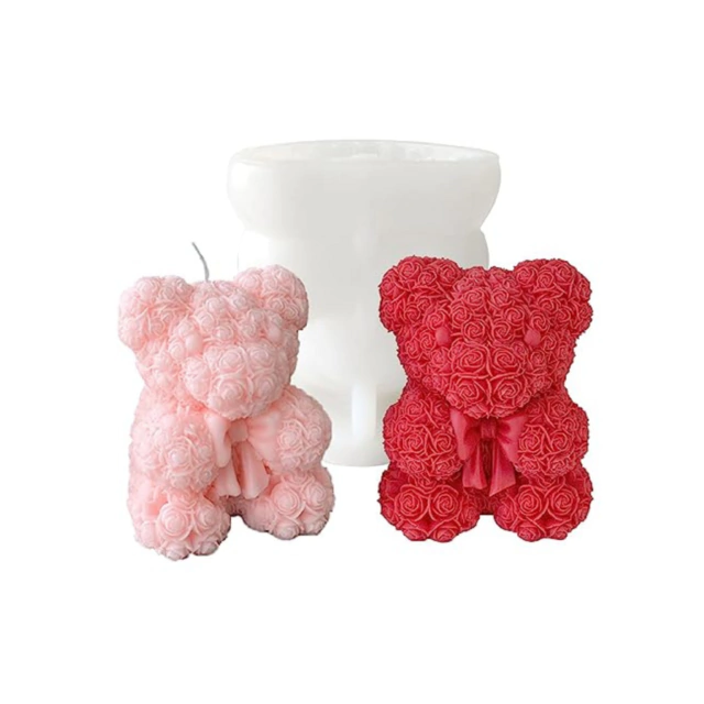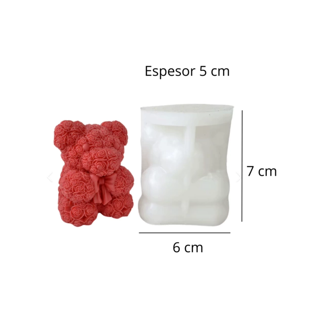 MOLDE SILICONA OSO CON ROSAS Y MOÑO