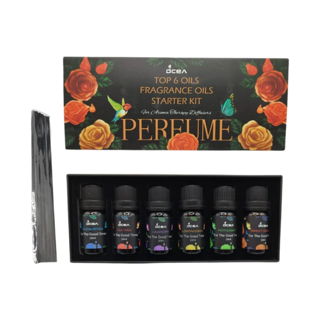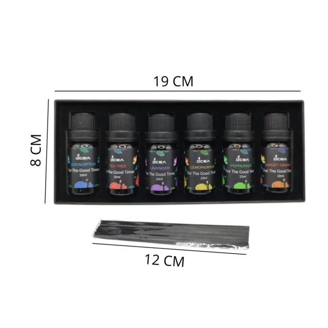 SET ACEITE FRAGANCIA 6 ESENCIAS AROMATERAPIA CON VARILLAS X 10 ML VELAS DIFUSORES